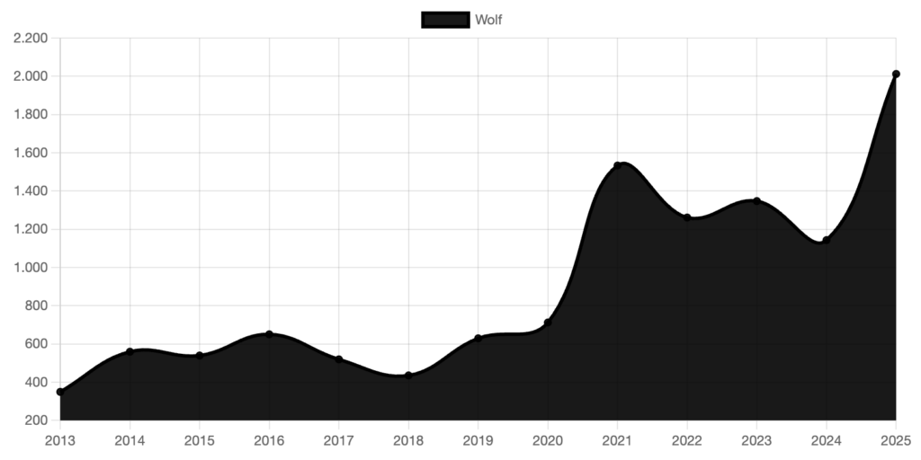 Würde ein Zusammenhang bestehen, dann hätte sich der Effekt meiner Auffassung nach um die Jahrtausendwende oder spätestens nach 2007 zeigen müssen. Das rapide Wachstum der Wolfspopulation begann jedoch erst 2021. Was also ist dann passiert?