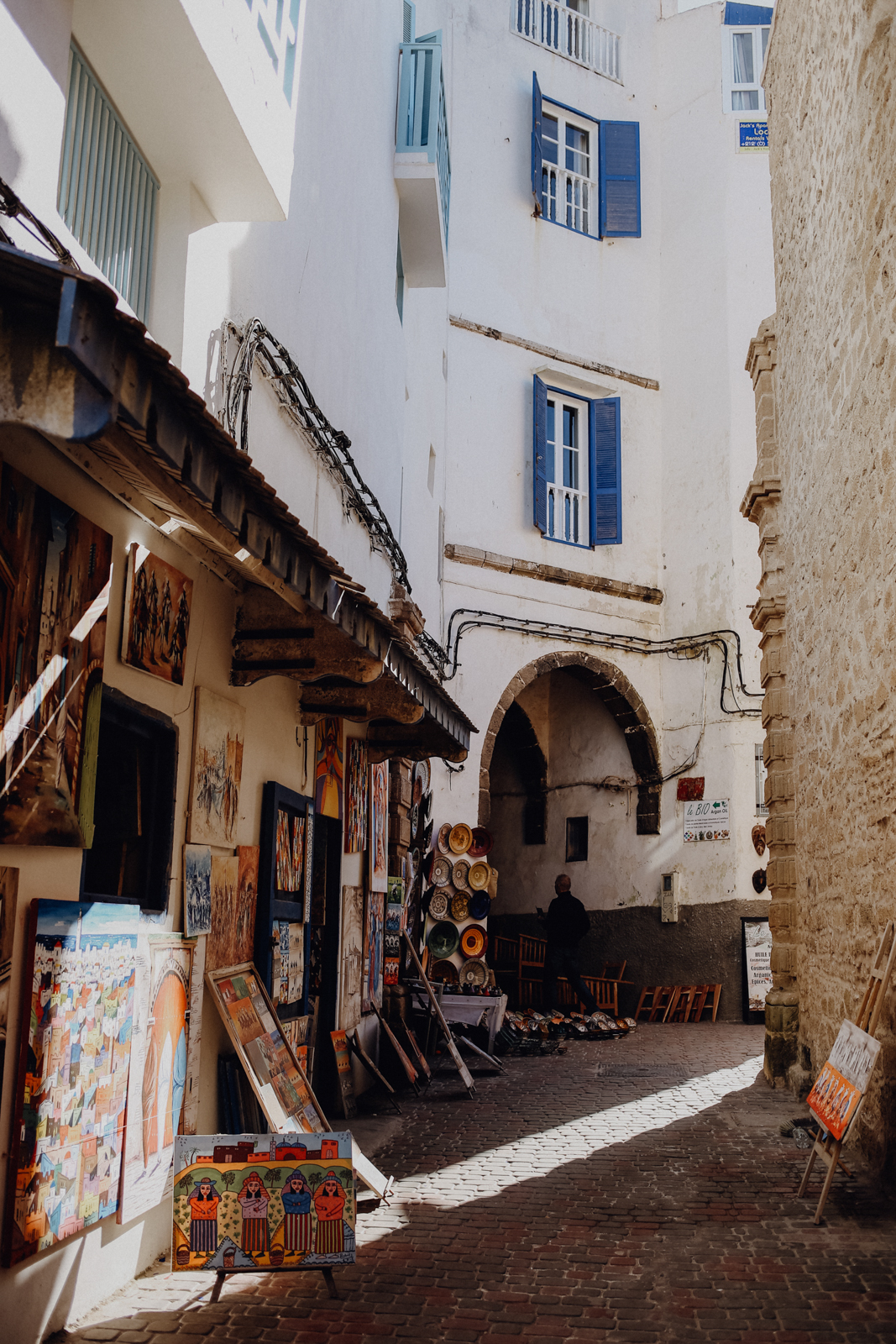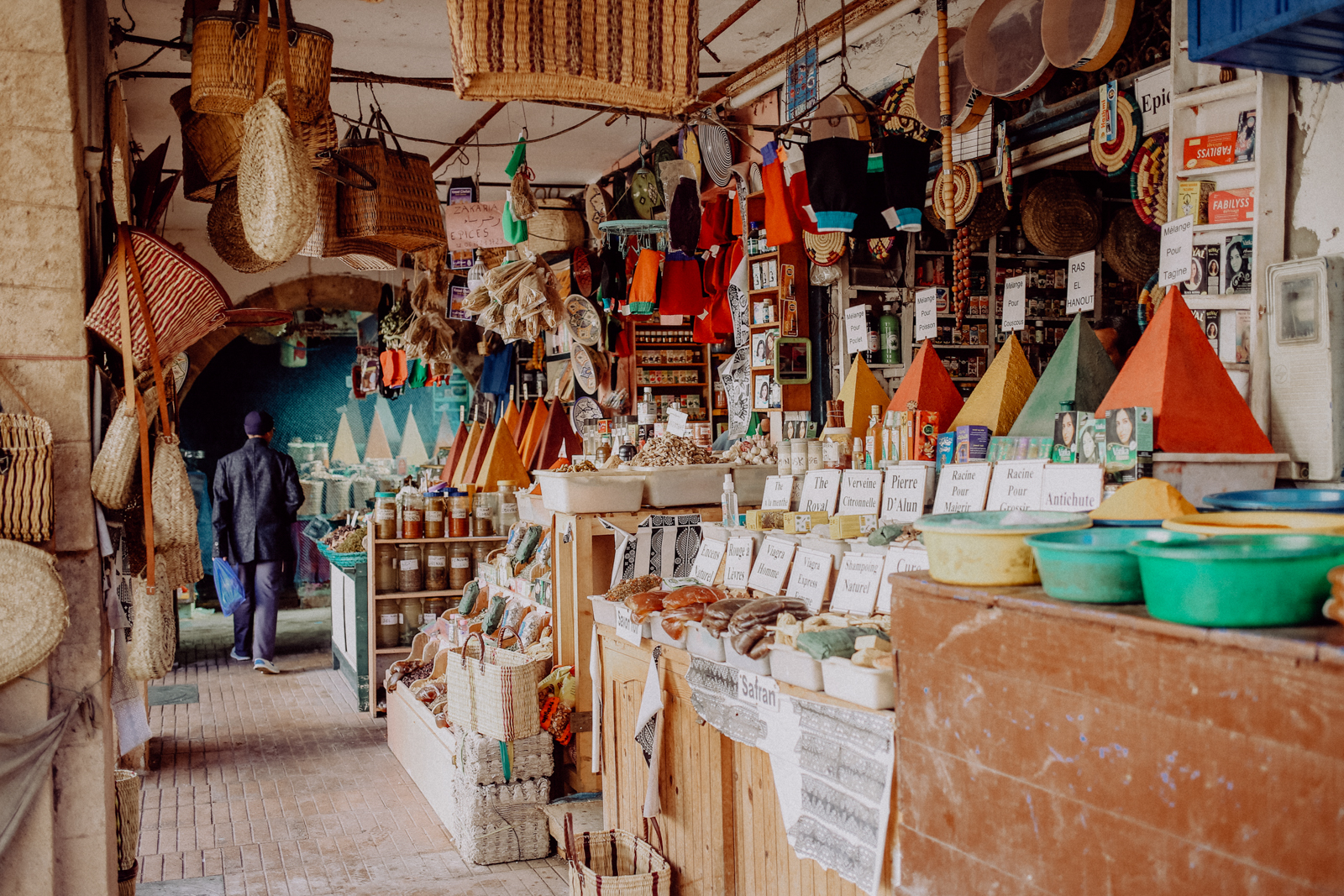 Ringsherum bezaubert Essaouira mit ihren sonnigen Gassen und den typisch marokkanischen Bildern bunter Verkaufsstände zwischen Moscheen, Synagogen und Märkten. Durch die Ruhe und die Gelassenheit der Leute lässt es sich in Essaouira auch sehr viel angenehmer einkaufen als in Marrakesch. Die Preise sind oftmals ausgeschrieben, sodass man nicht danach fragen und feilschen muss. Verhandelbar sind sie natürlich trotzdem.