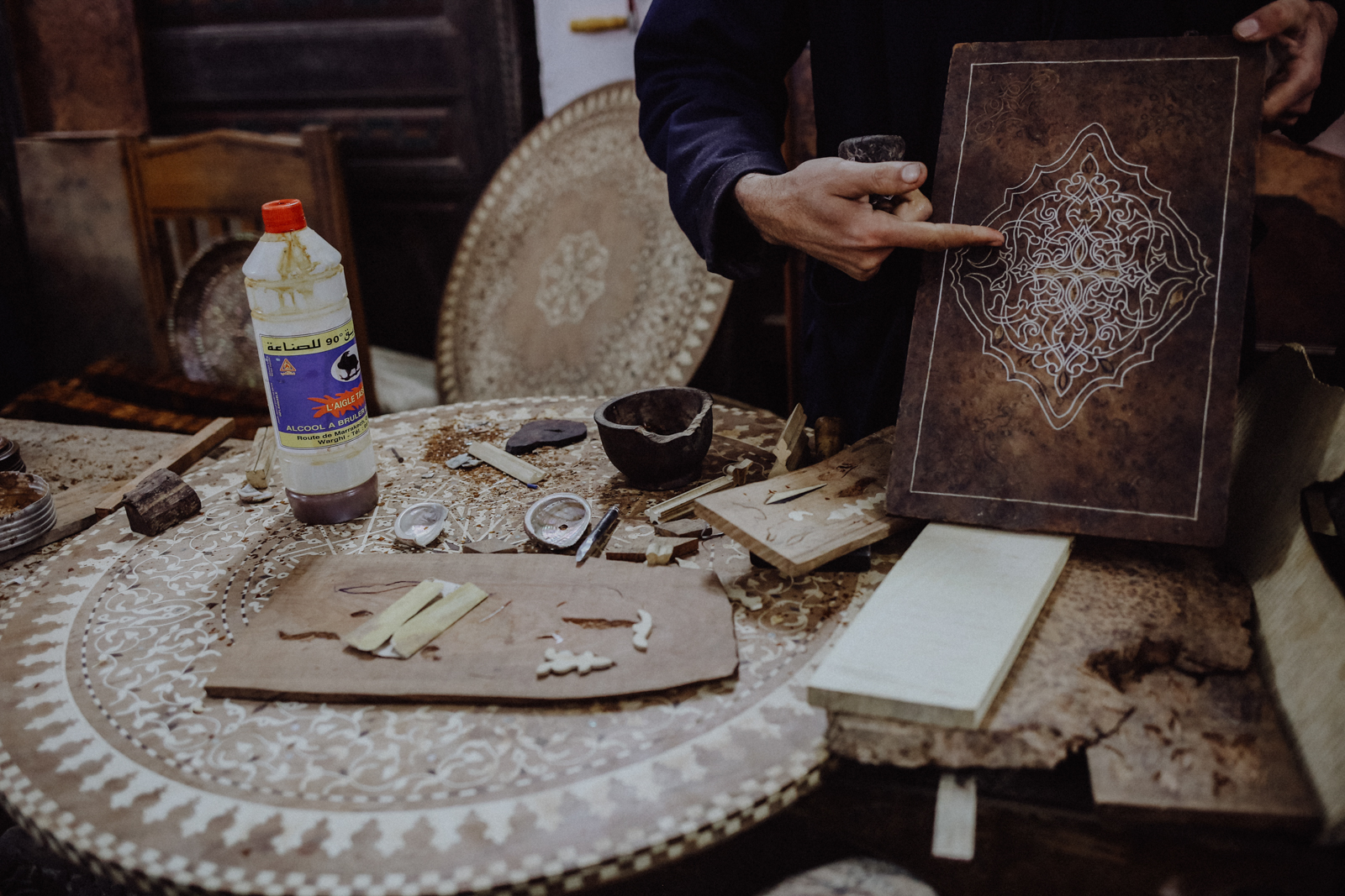 Nach einem Kaffee und einem Crepe auf dem Place Moulay el Hassan, dem großen Platz vor dem Hafen, kannst Du dich durch die Gassen der Stadt treiben lassen und die verschiedenen Viertel der Medina entdecken. Von der Skala de la Ville, der beeindruckende Seefahrerbastion am südwestlichen Rand der Stadt, hast Du einen beeindruckenden Ausblick aufs Meer. Zu ihren Füßen liegt sogleich das reiche Kasbah-Viertel, unter dessen Häusern in zahlreichen Werkstätten noch immer die traditionellen Gnaoua-Instrumente und Trommeln gefertigt werden. Besonders beeindruckend ist aber auch ein Besuch in der Holzkunst-Schule. Dort absolvieren talentierte Kunsthandwerker ihre Ausbildung und lernen, wie aus dem eisenharten Holz der Thuja-Pinien die raffinierten und reich verzierten Kästchen, Möbel und Spielsachen schnitzen, die Du überall in der Stadt sehen wirst.