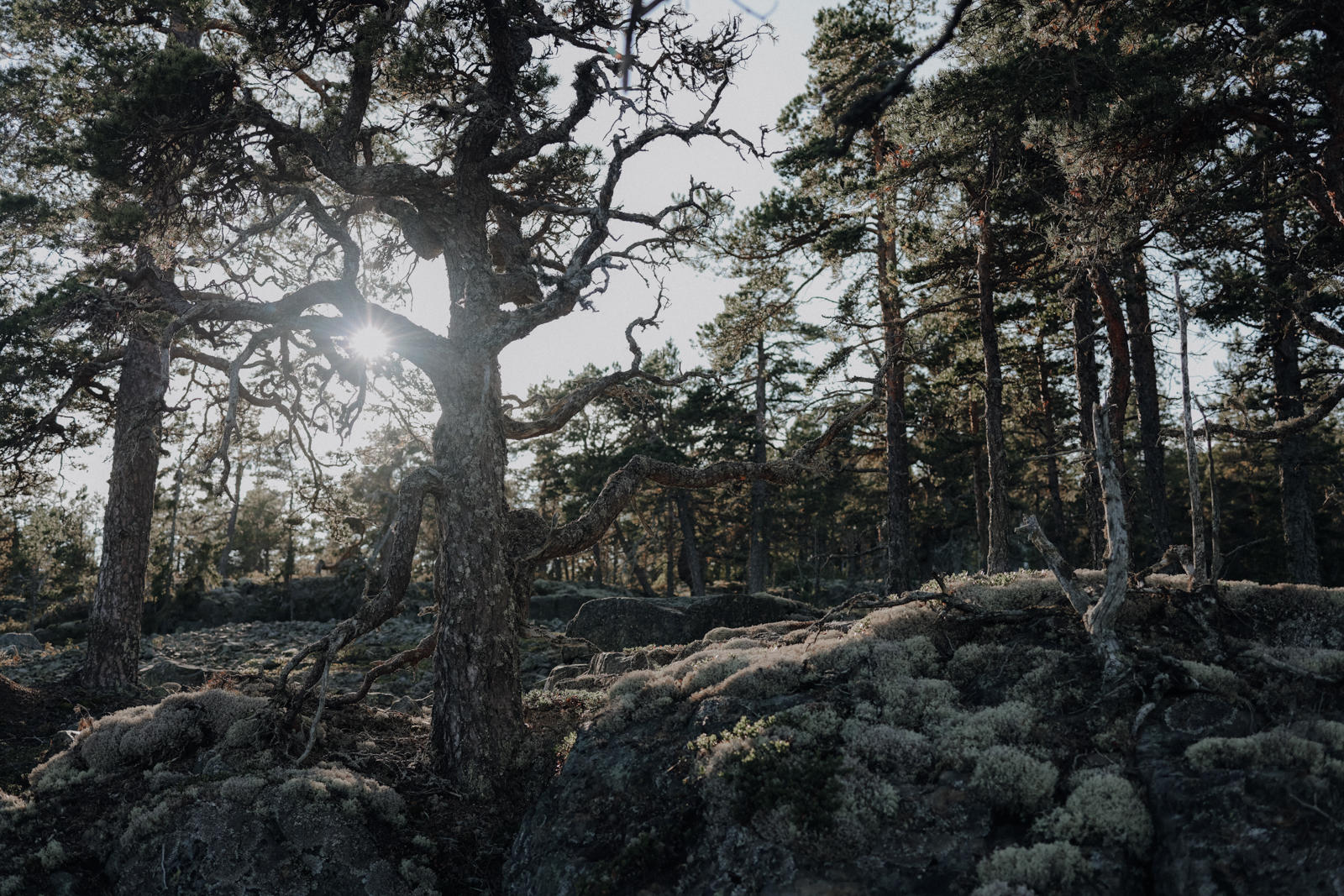 Trotzdem hatte es die erste Etappe in sich - zumindest ihr Ende. Nach einer kurzen Verschnaufpause auf den Schotterstraßen rund um Lövvik, erwartete uns hinter Halsviken Strand die erste Herausforderung in Form eines felsigen Pfads direkt am Meer, der einem kilometerlangen Treppenlauf gleich kam. Mit jedem Schritt ging es auf und ab und ab und auf. Dennoch habe ich diesen Abschnitt als einen meiner liebsten des gesamten Höga Kustenleden in Erinnerung, so magisch war die karge Landschaft aus moosüberspülten Felsen und knorrigen Eichen, die überall mit ihren Wurzeln nach den Steinen griffen.