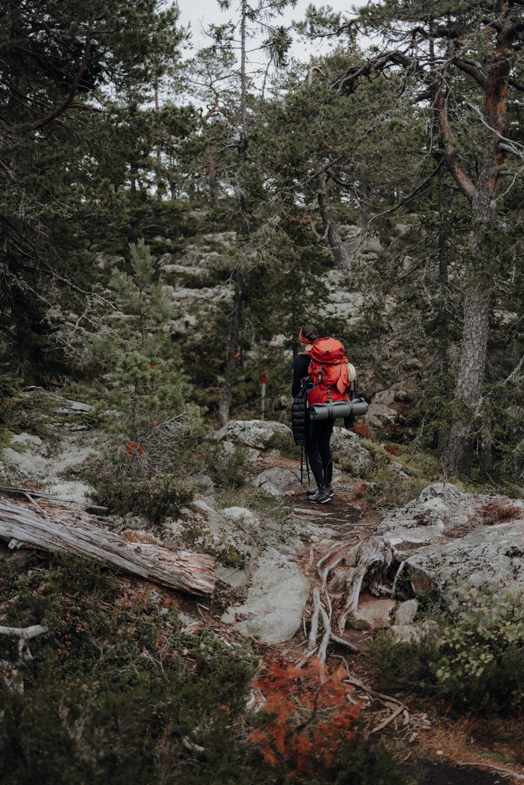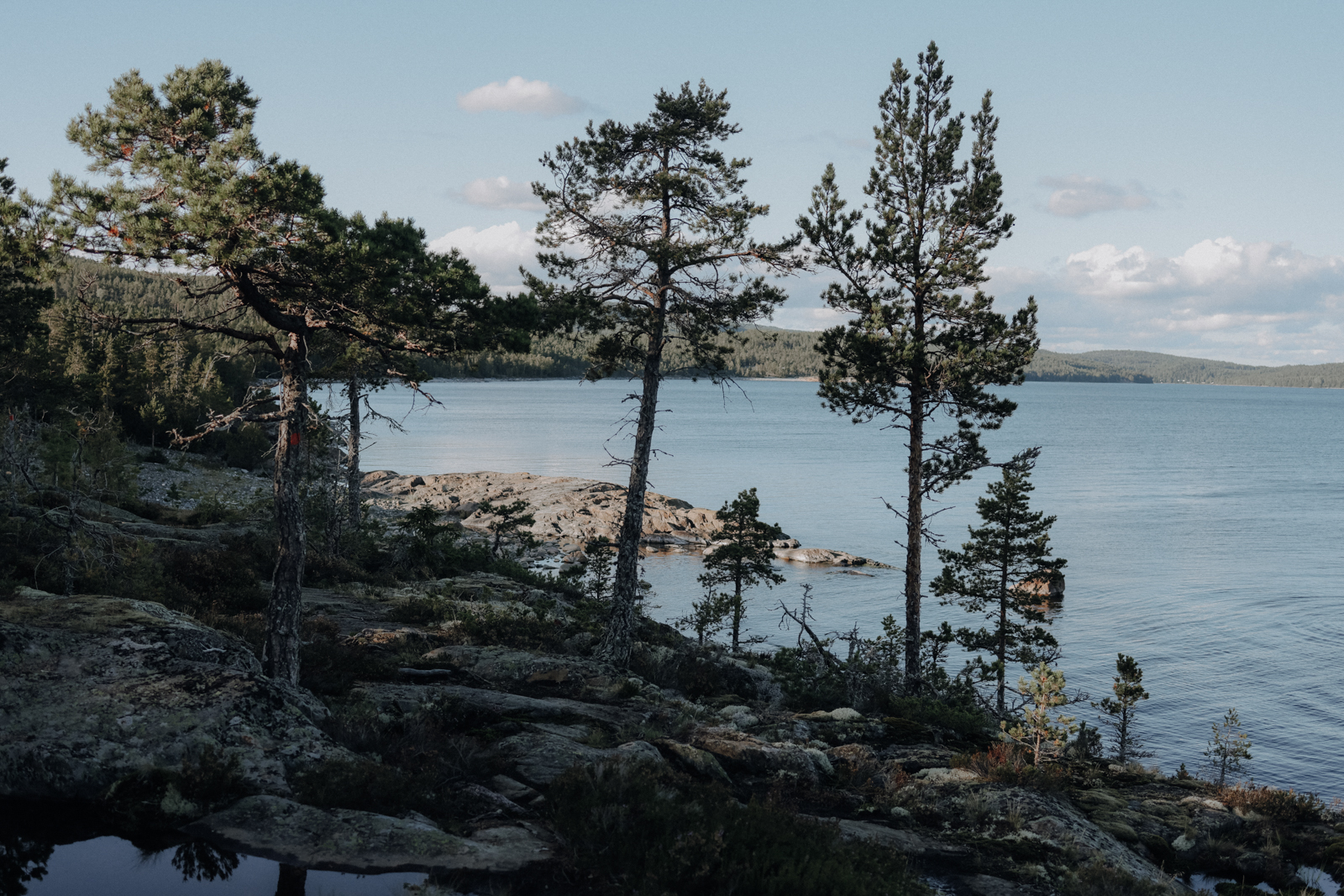 Weil die Etappe so aber recht kurz wäre, geht’s weiter, zunächst an den drei Seen Högforstjärnen, Vedasjön und Svartsjön vorbei, und wieder mitten hinein in die wildromantischen Fels- und Waldlandschaften, die wir am Tag zuvor doch ein bisschen vermisst hatten.