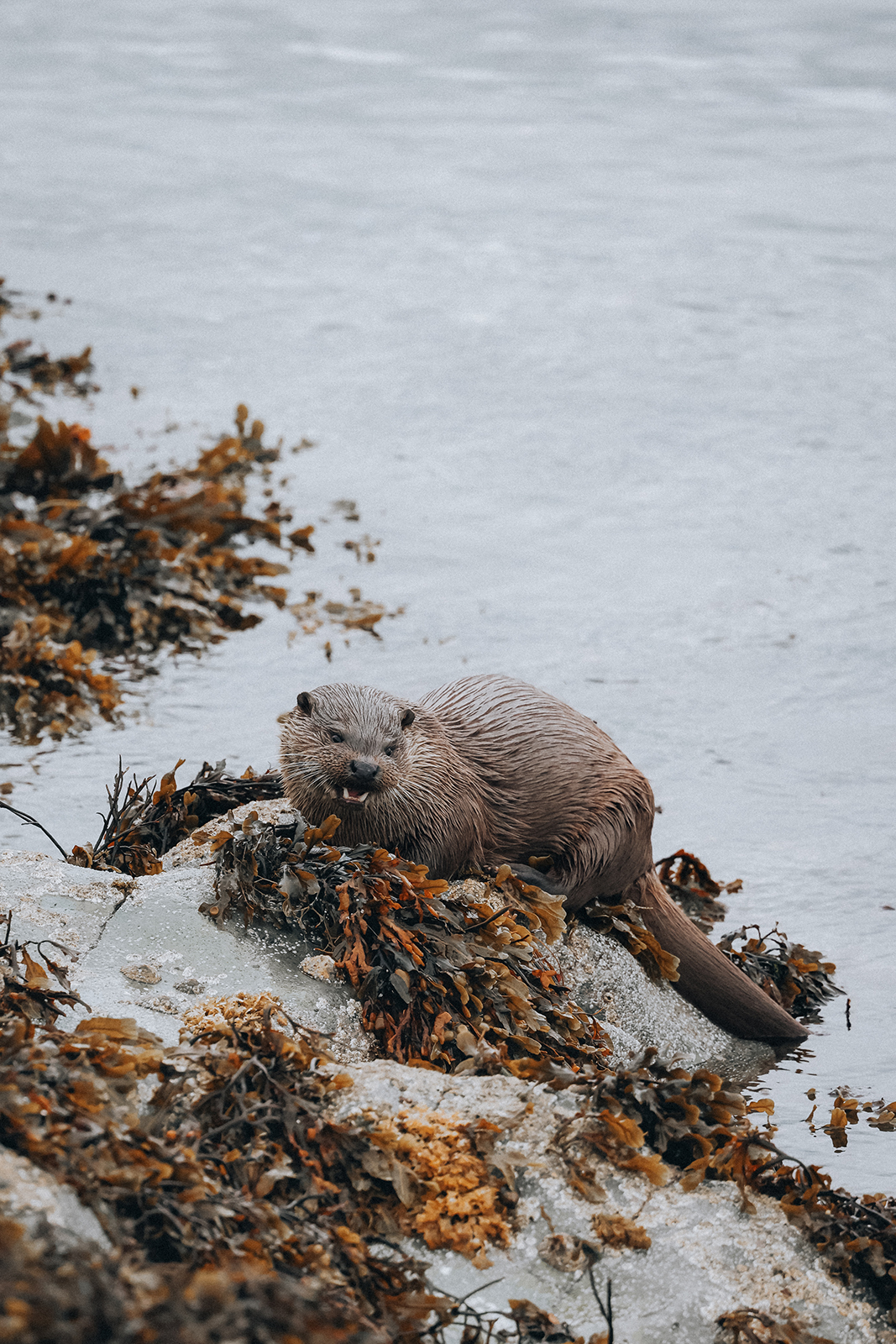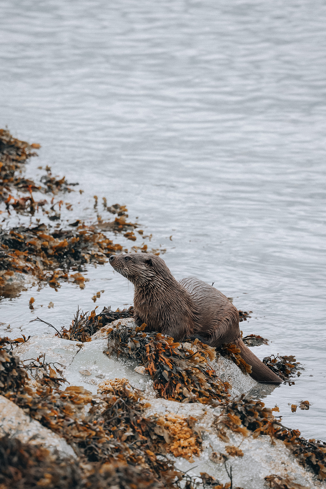 Obwohl Otter eigentlich als dämmerungsaktiv gelten, kann man sie auf der Isle of Mull fast zu jeder Tageszeit sichten, am häufigsten jedoch während der fallenden Tide. Im seichten Wasser ist es für die Otter leichter zu jagen, zudem gibt es dann größere geschützte Bereiche am Ufer, an denen sie ihren Fang verzehren können. Meistens sind es die Uferbereiche, die von dichten Algenteppichen überzogen sind, an denen sie an Land kommen – maßgeblich sicher deshalb, weil sie dort so gut getarnt sind. Tatsächlich ist es nahezu unmöglich, einen Otter auf den algenbedeckten Felsen auszumachen, selbst wenn er sich bewegt. Ihr nasses, strukturiertes Fell verschmilzt regelrecht mit der Umgebung. Einfacher ist es deshalb, auf dem Wasser nach ihren schwarzen Köpfchen Ausschau zu halten. Bedenke dabei jedoch, dass Otter bis zu 8 Minuten lang tauchen können – es lohnt sich also, sich genügend Zeit zu nehmen.
