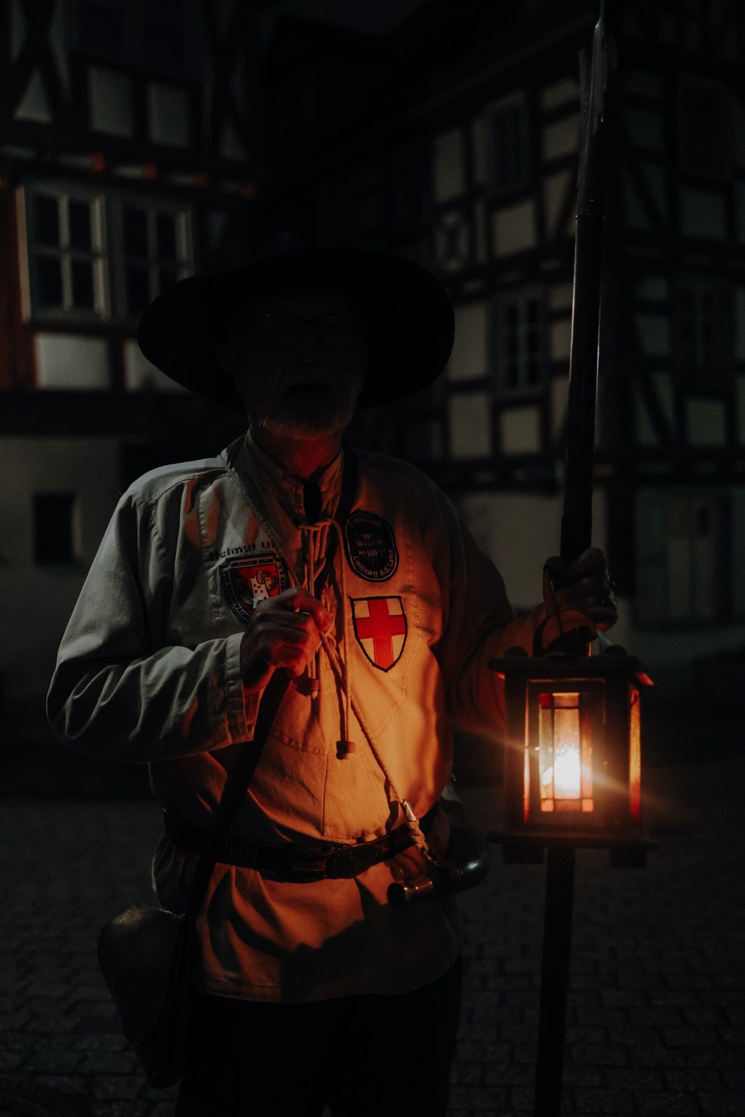 Abends, wenn die Tagesbesucher verschwunden sind und Laternen die Altstadt in schummriges Licht tauchen, hat man in Limburg die Chance auf ein ganz besonderes Erlebnis: die Nachtwächterführung. Gewandet in historisches Kostüm, mit Hellebarde und Kerze ausgestattet, führt der Nachtwächter durch die Gassen und erzählt von Zünften, Bränden, Pestzeiten und Überfällen, wobei er mit seinem Licht so manch ein Detail an den Häusern sichtbar macht, das man tagsüber ganz bestimmt übersehen hat… So entdeckt man auf einmal Drachen, die berühmten Limburger Todsünden, einen versteckten Langfinger oder sogar griechische Götter. Und lässt man sich auf den Zauber ein, verschmelzen die Geschichten, die Altstadt und die vielen fantastischen Figuren über den Abend immer mehr zu einer Märchenbuchkulisse… Als hätte man die Realität verlassen – zumindest für eineinhalb fantasievolle Stunden lang.